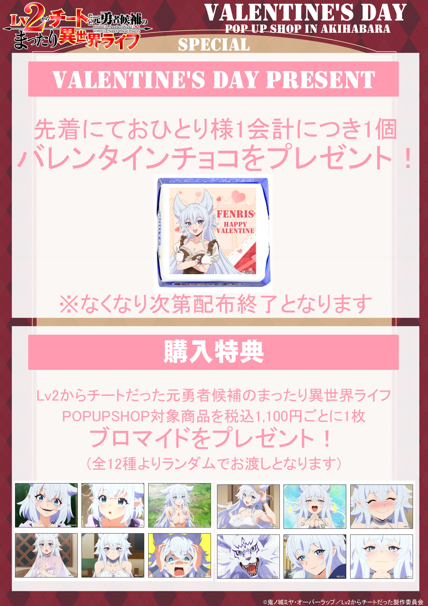 バレンタインにちなんでの「Lv2からチートだった元勇者候補のまったり異世界ライフ」POP UP SHOPの開催が決定!!